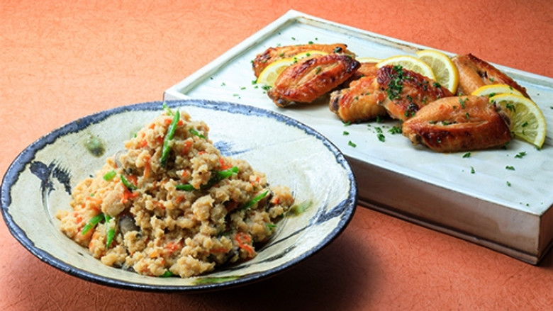 Our theme for this episode is simmering. Okara is a byproduct of making tofu, an iconic Japanese ingredient. We'll be using okara and plenty of dashi, simmered together to make the popular dish unohana-ni. By adding richly flavorful ingredients to the bland okara, we can make a healthy and delicious side that goes perfectly with rice. We'll also be making roasted teriyaki chicken wings — a quick and easy dish to prepare while the unohana-ni simmers!